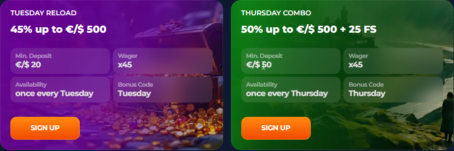 The excitement doesn't fade after the initial deposits. Axe Casino takes care of its loyal players by offering frequent reload bonuses , ensuring there's always something extra waiting in your account. Are you a high roller? Then don’t miss out on the specialized high roller bonus , which comes with enhanced rewards crafted just for players who enjoy playing big and winning even bigger.